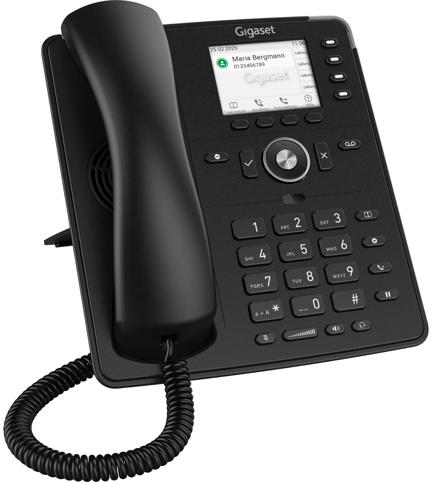 Die Tasten können nach Ihren eigenen Wünschen und Bedürfnissen konfiguriert werden. Nützliche Funktionen wie Kurzwahl, Direktwahl oder Durchwahl können direkt auf jede der vier Tasten gelegt werden. So haben Sie alle Funktionen, die Sie an Ihrem Arbeitsplatz benötigen, direkt zur Hand. Die mehrfarbigen LEDs zeigen den Anruf- oder Anwesenheitsstatus an. Das Gigaset P710 IP PRO verwendet Smart Labels zur Beschriftung der Funktionstasten. Smart Labels sorgen für eine gute Lesbarkeit aller Informationen auf den Funktionstasten, auch wenn das Display eher kompakt ist.