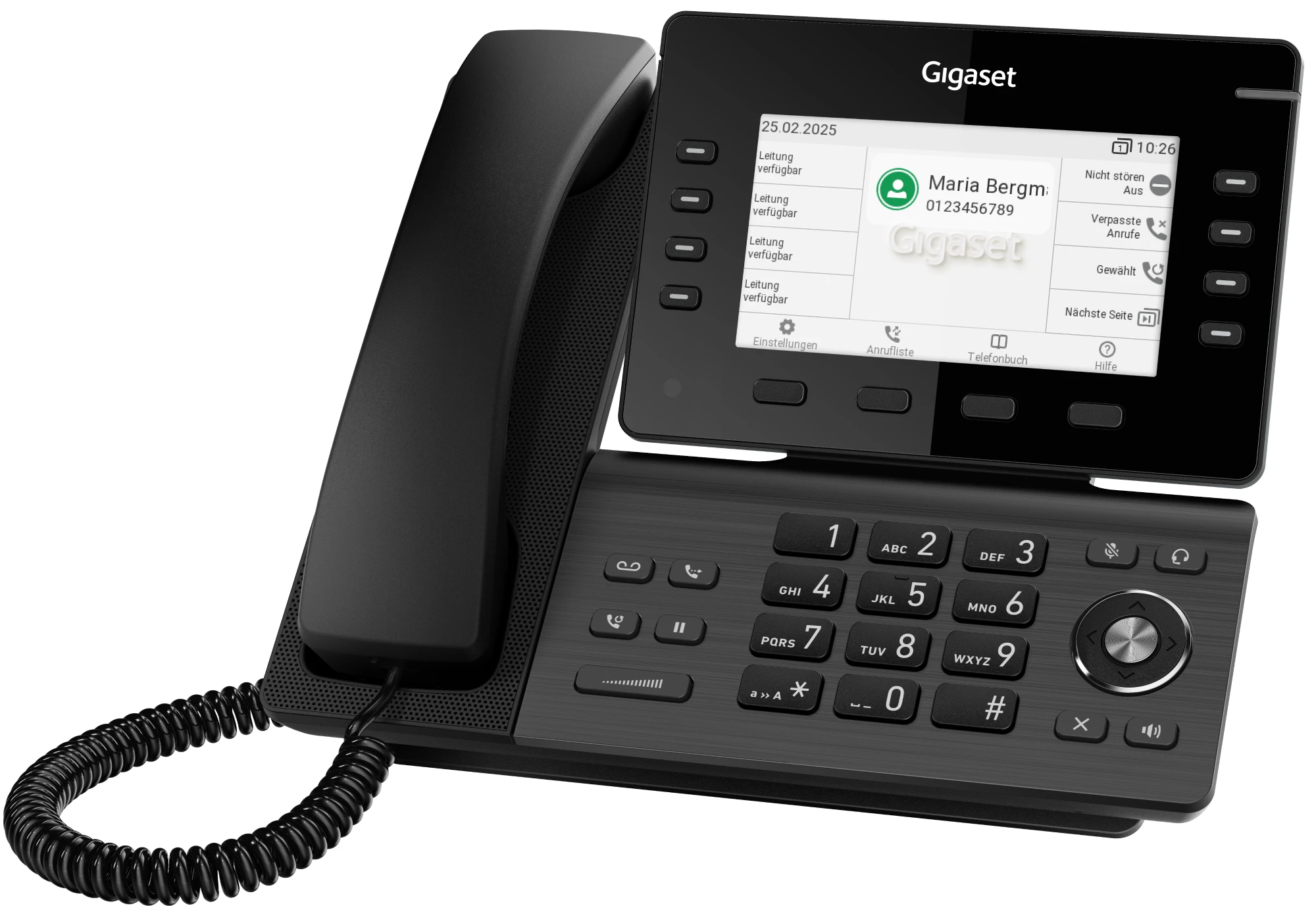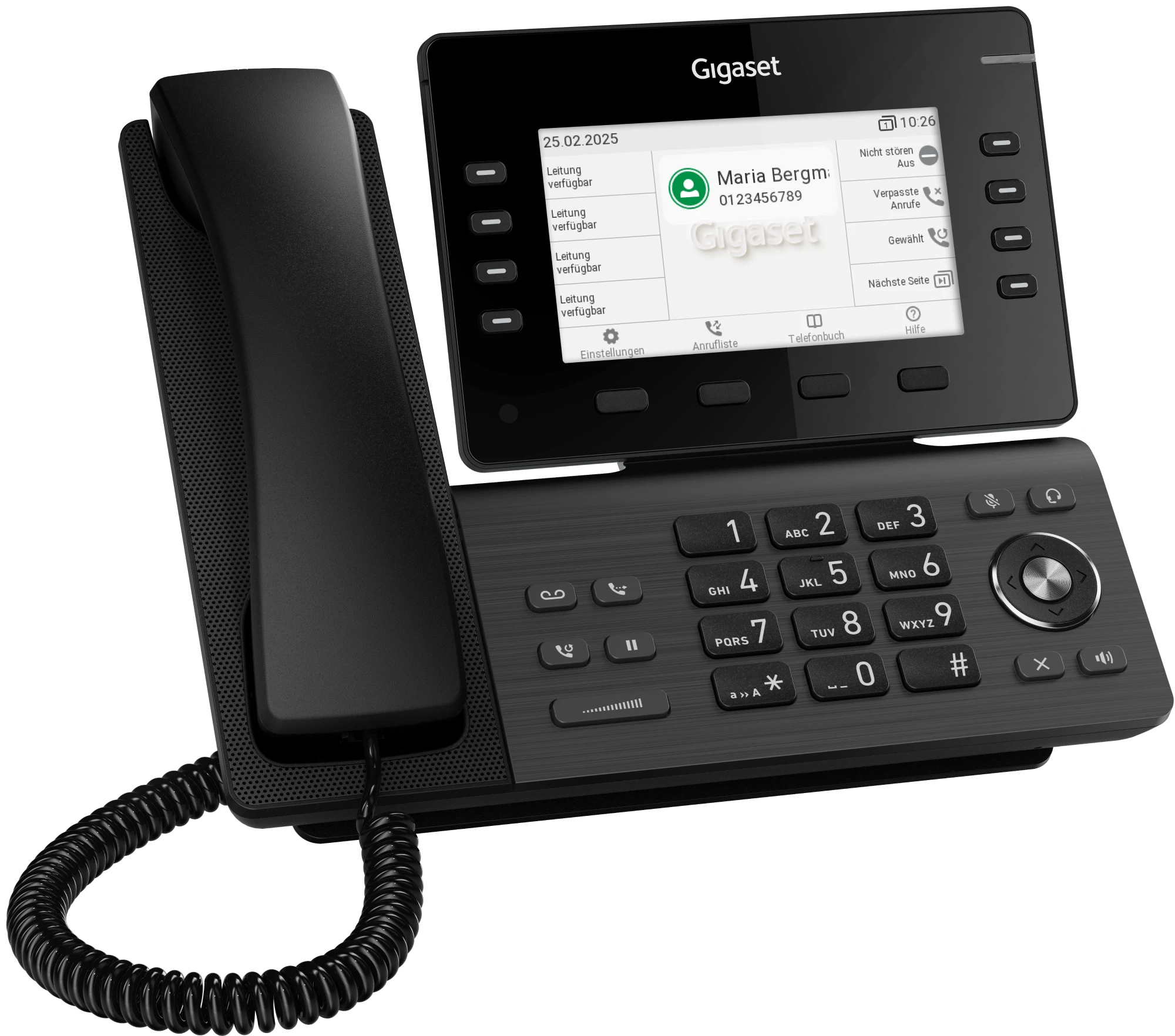 Das elegante und schlanke Design im Gunmetal-Look macht das Gigaset P820 IP PRO und Gigaset P825 IP PRO zu einem Blickfang in jeder Büroumgebung. Die Telefone haben eine kompakte Größe und lassen sich leicht auf dem Schreibtisch unterbringen.